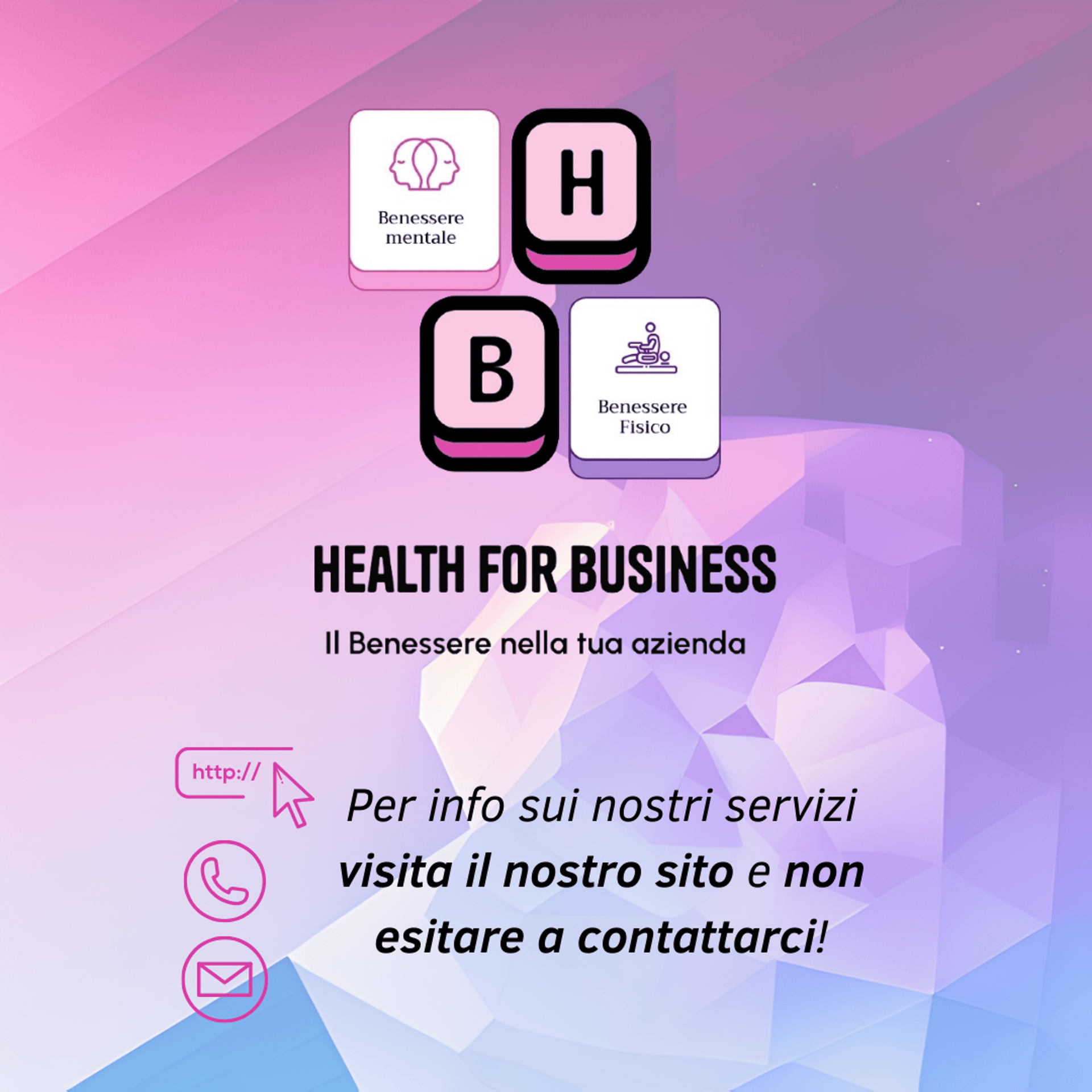 Questo servizio è offerto da Health for Business, una realtà specializzata in wellbeing aziendale, che unisce professionisti della salute, del counseling e della formazione.